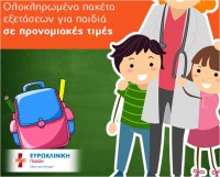 Η Ευρωκλινική Παίδων υποδέχεται τη νέα σχολική χρονιά με εξειδικευμένα πακέτα προληπτικού ελέγχου υγείας για όλους τους μαθητές. Στο πλαίσιο του προγράμματος εταιρικής κοινωνικής ευθύνης που υλοποιεί, η Ευρωκλινική Παίδων αφουγκράζεται τις ανάγκες των σύγχρονων γονέων και δημιουργεί τις σωστές προϋποθέσεις για φροντίδα και πρόληψη, παρέχοντας πακέτα εξετάσεων για παιδιά σε προνομιακές τιμές, για περιορισμένο χρονικό διάστημα.