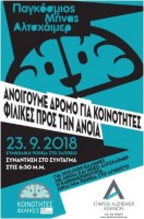 Στις 23 Σεπτεµβρίου 2018 η Εταιρεία Alzheimer Αθηνών ανοίγει δρόµο για κοινότητες φιλικές προς την άνοια με συγκέντρωση στο Σύνταγµα στις 6:30 µ.µ. για µια συµβολική πορεία προς το Ζάππειο.