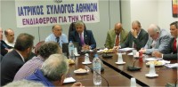 Η σύσταση κοινού μετώπου των Φορέων Πρωτοβάθμιας Φροντίδας Υγείας και του ΙΣΑ, ενάντια στην καταστροφική πολιτική του Υπουργείου Υγείας που οδηγεί στο λουκέτο τα εργαστήρια και τα πολυϊατρεία, παραδίδοντας την υγεία στα ξένα επιχειρηματικά συμφέροντα, αποφασίσθηκε στο πλαίσιο έκτακτης σύσκεψης που συγκάλεσε σήμερα, στα γραφεία του ΙΣΑ ,ο πρόεδρος Γ. Πατούλης, με τους προέδρους των Επιστημονικών Ενώσεων και Ομοσπονδιών, παρουσία των προέδρων των Ιατρικών Συλλόγων Πειραιά και Πάτρας κ.κ. Ν. Πλατανησιώτη και Α. Μαστοράκου. Στη σύσκεψη παραβρέθηκε επίσης ο Α’ Αντιπρόεδρος του ΙΣΑ Φ. Πατσουράκος.